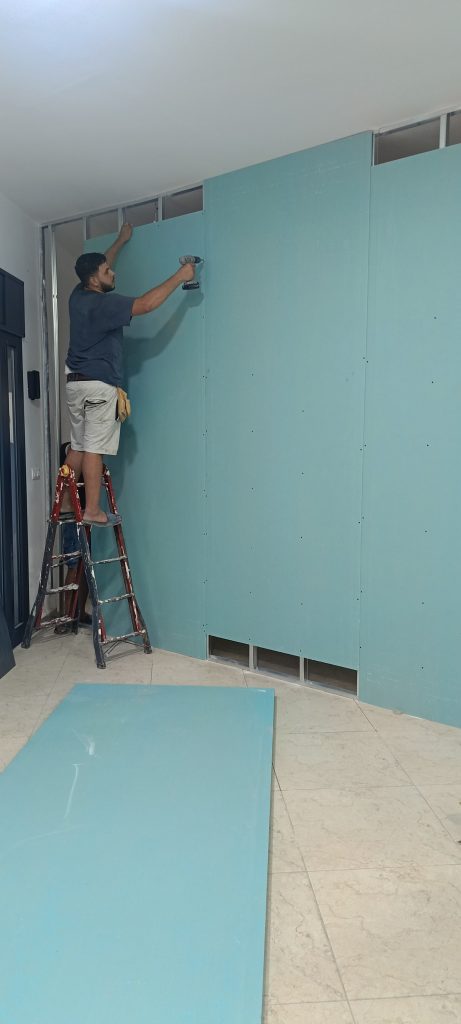 - All-in-one : pose plaque de plâtre, fourniture, ossatures, électricité, décoration — un seul interlocuteur.