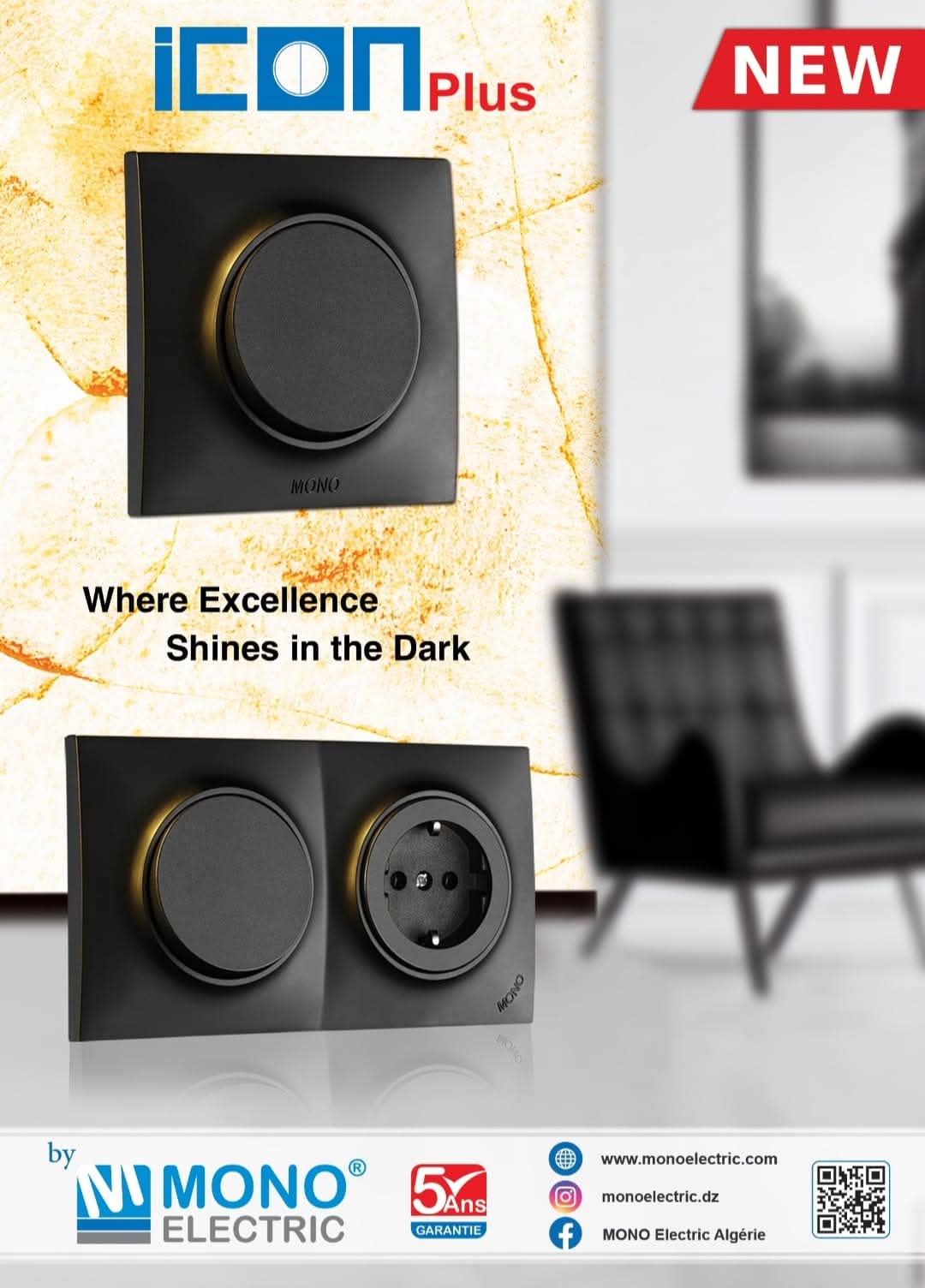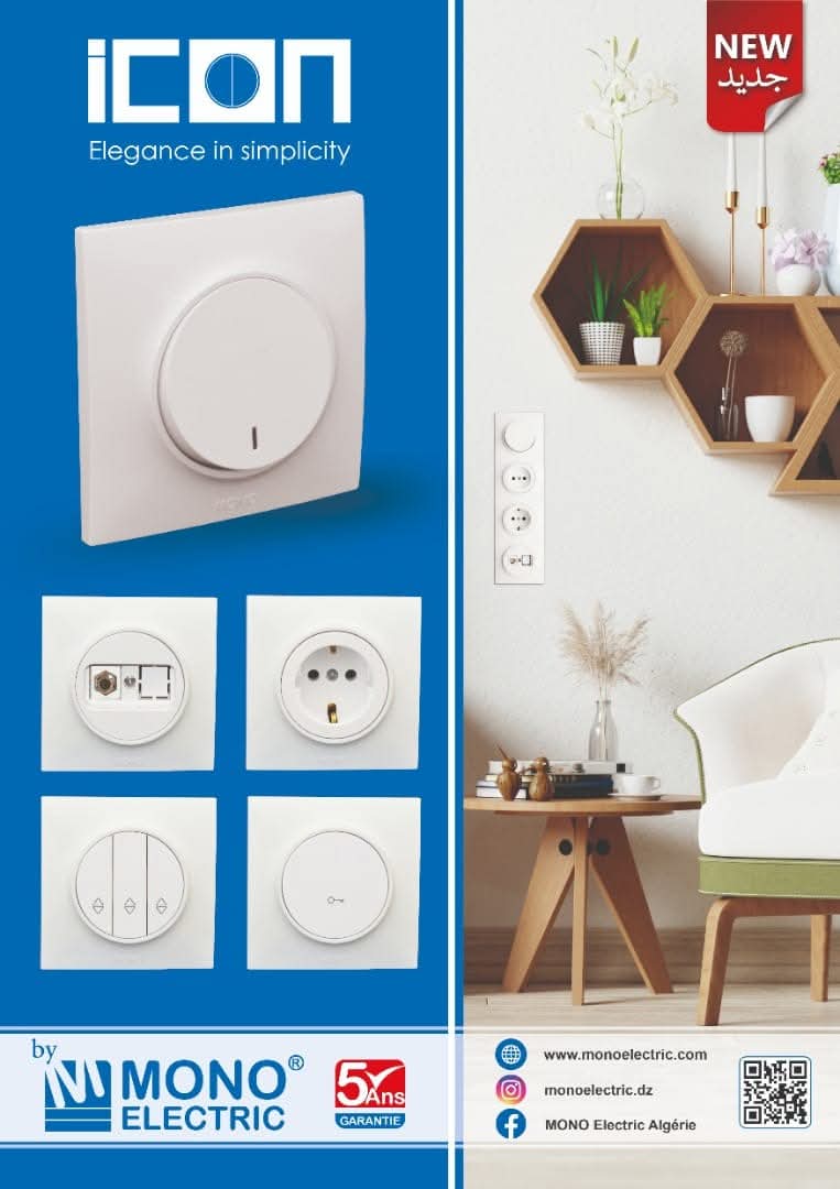 La gamme ICON de Mono Electric est devenue l’un des appareillages les plus populaires du marché algérien grâce à son design moderne, ses lignes élégantes et sa qualité irréprochable.