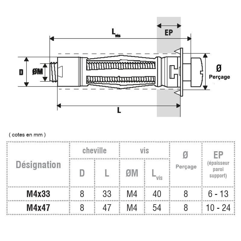 - Expansion parfaite à l’arrière de la plaque (grande surface d’ancrage)