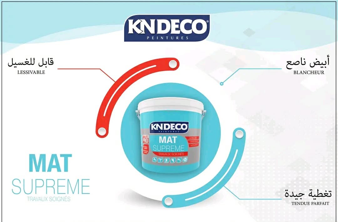 La Mat Suprême Kndeco est une peinture satinée mat haut de gamme, reconnue pour sa blancheur exceptionnelle, sa tendue parfaite et son touché velouté.