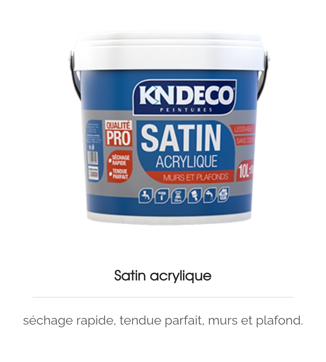 Le Satin Acrylique Kndeco est une peinture en résine acrylique satinée, en dispersion aqueuse, conçue pour les murs et plafonds intérieurs.