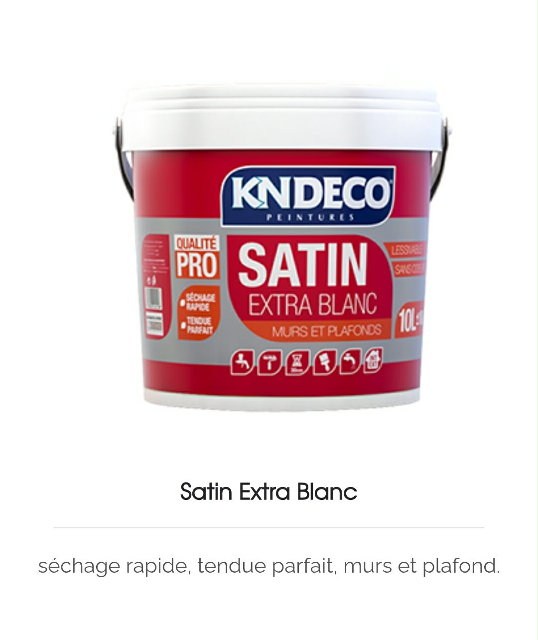 Le Satin Extra Blanc Kndeco est une peinture satinée haut de gamme destinée aux murs et plafonds, idéale pour rafraîchir rapidement votre intérieur avec un blanc éclatant et une finition propre.