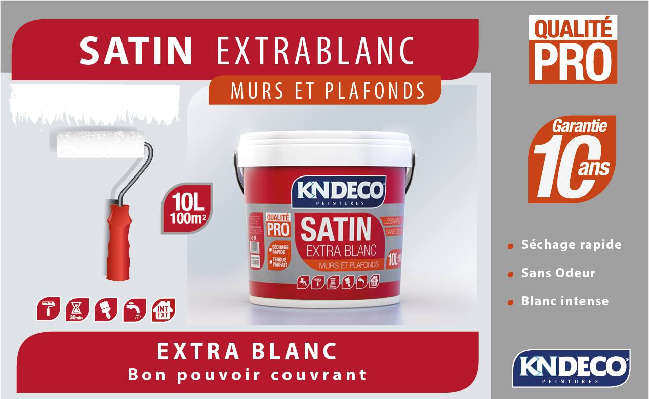 satin extra blanc kndecoPeinture satinée brillante pour murs et plafonds